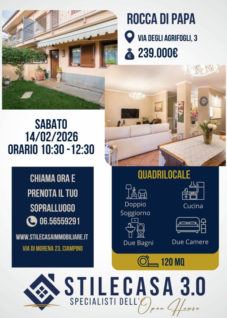 In un contesto residenziale tranquillo ma allo stesso tempo centrale, nel cuore di Rocca di Papa e precisamente in Via degli Agrifogli, ti attende una dimora capace di regalarti ogni giorno una sensazione di benvenuto.